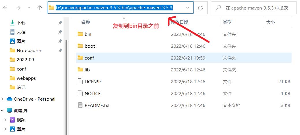 赋值安装的目录,到bin之前