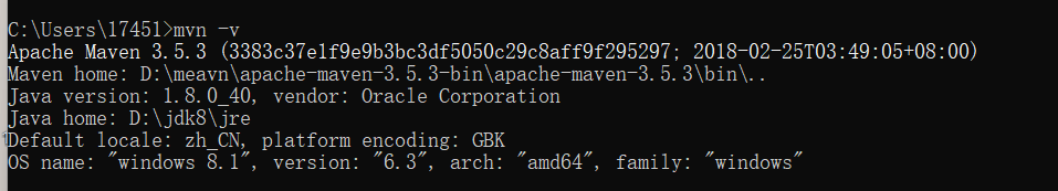 win+R打开黑窗口,输入mvn -v,出现maven版本信息,即配置成功