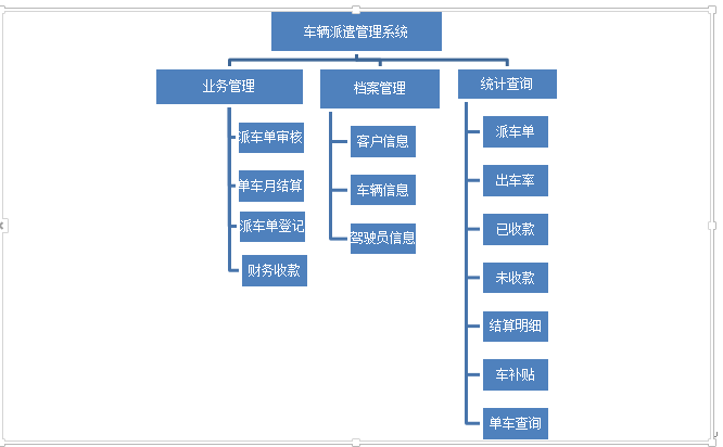 派车单登记:系统管理员进入系统后填写登记派车信息,如派车单号、用车单位、联系人、出车日期、出车时间、起始地点、车辆号码、驾驶员、业务员、租车费、支付方式、所属类别等信息来记录所派遣出去车辆的基本信息。