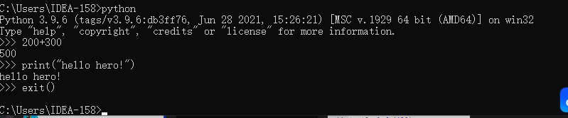 在Python交互模式下输入exit()并回车,就退出了Python交互模式,并回到命令行模式