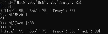 把数据放入dict的方法,除了初始化时指定外,还可以通过key放入,
