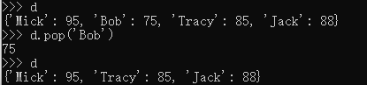 要删除一个key,使用pop(key)方法,对应的key和value是一起删除