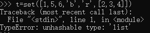 因key不能重复,所以,在set中没有重复的key。要创建一个set,需要提供一个list作为输入集合。list是可变的,就不能作为key