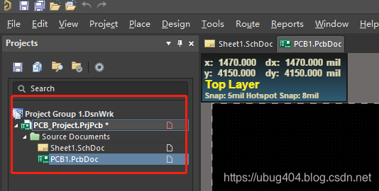 在AD中,项目的层级为“工程组Project Group”(之前称为工作空间WorkSpace)——>“工程”——>“文件”(原理图、PCB),如下图所示: