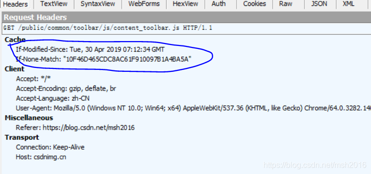 当用户再次请求该资源时,将在HTTP Request 中加入If-None-Match信息(ETag的值)。