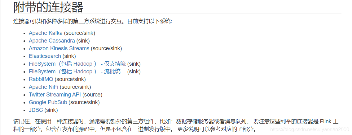 - https://ci.apache.org/projects/flink/flink-docs-release-1.12/zh/dev/connectors/