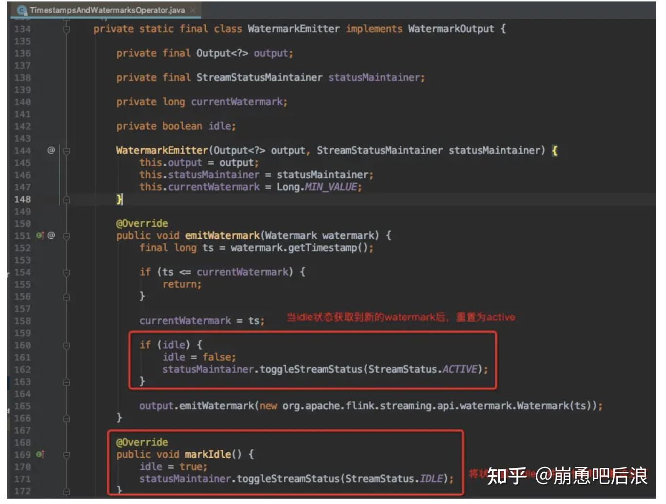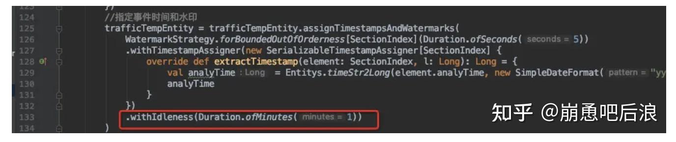 WatermarkStrategy.withIdleness()方法允许用户在配置的时间内(即超时时间内)没有记录到达时将一个流标记为空闲,从而进一步支持 Flink 正确处理多个并发之间的事件时间倾斜的问题,