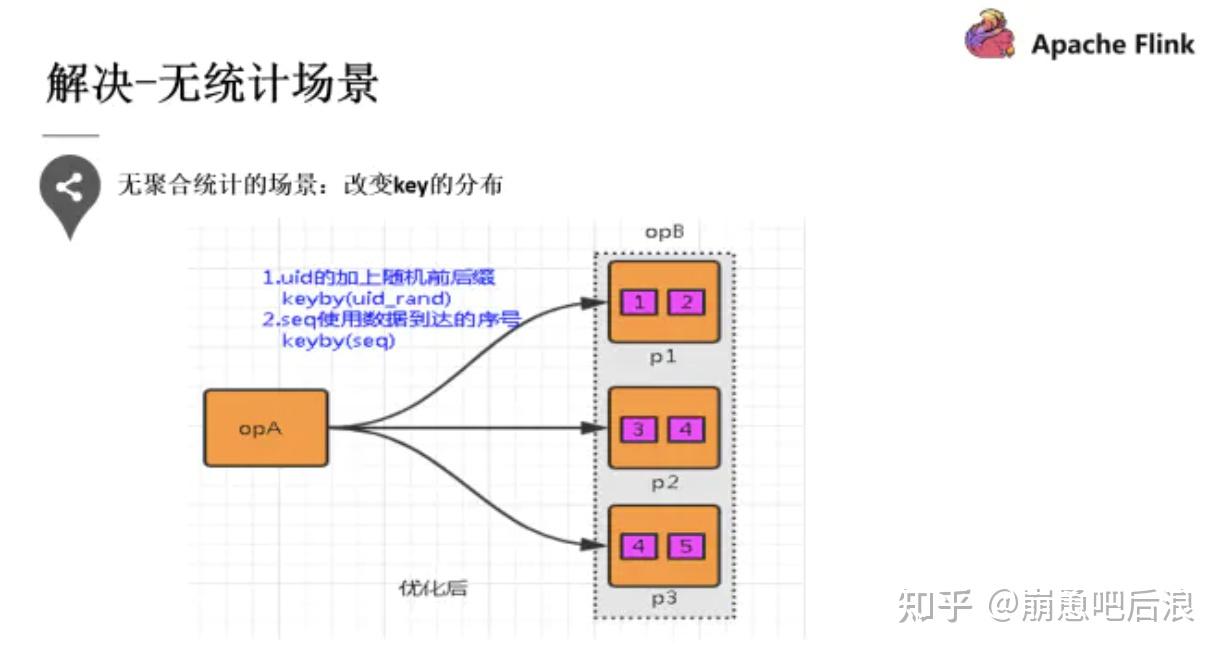 第二种提到的就是 key 分布不均匀的情况,可以通过添加随机前缀打散它们的分布,使得数据不会集中在几个 Task 中。