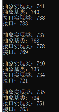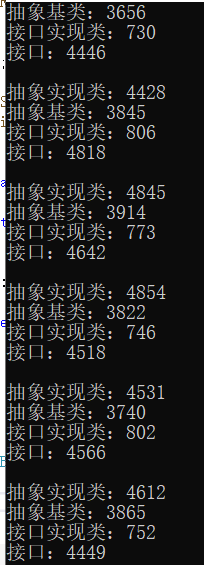 二者效果相差甚远,更可怕的是,抽象类的实现的与接口的实现耗时相差也很多