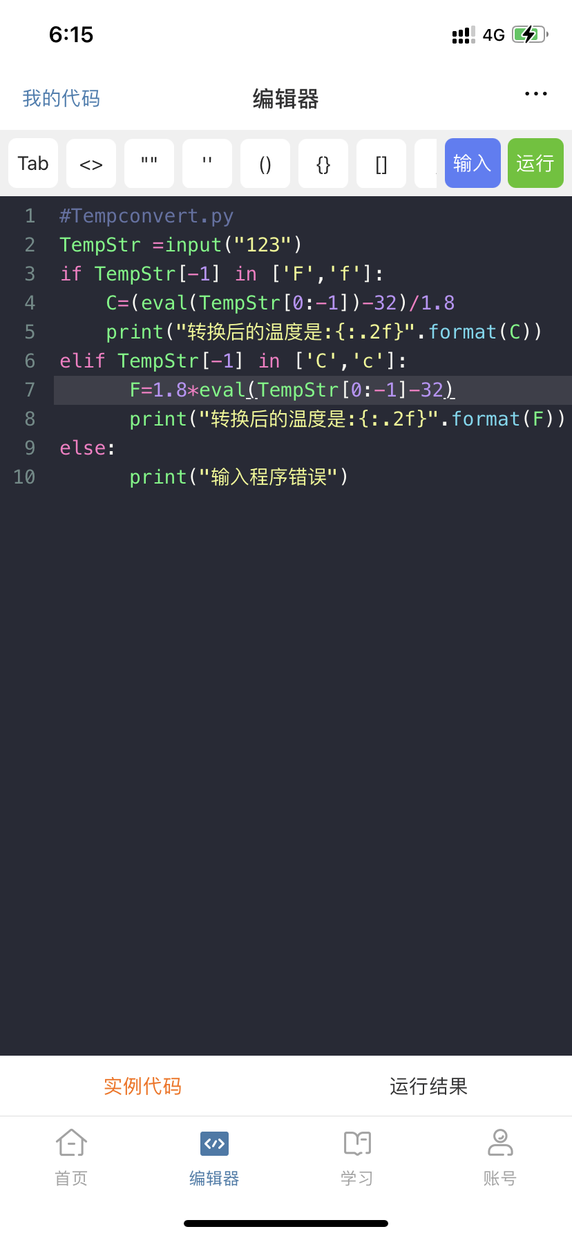 老师用一个温度实例来给我们解释温度转换代码,我自己也尝试成功了