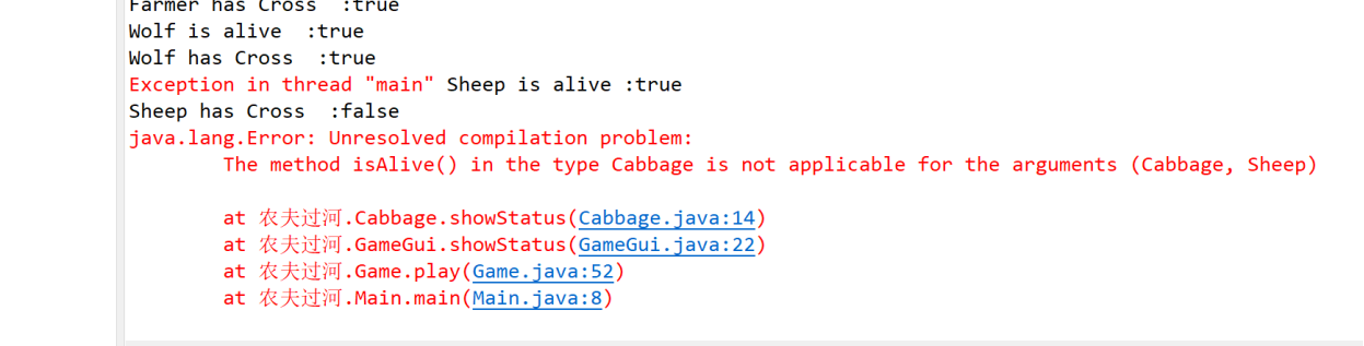 在农夫过河实验中,我出现了一些错误,例如: