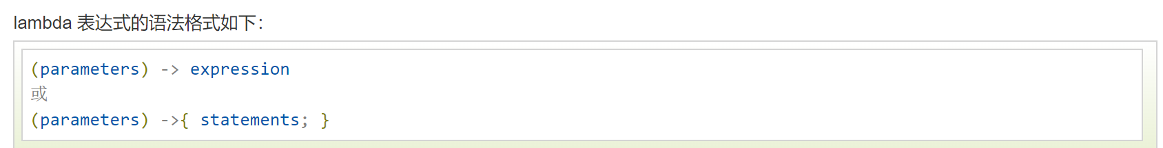 例如:接受一个参数类型返回其两倍的值:x->2*x;或者接受一个string对象,并在控制台打印:(String s)->System.out.print(s);
