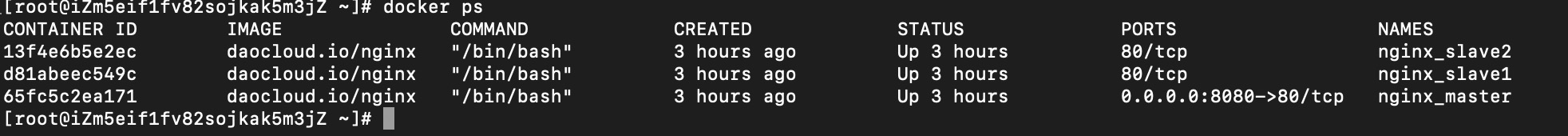 docker run -itd --name nginx_slave2 daocloud.io/nginx /bin/bash