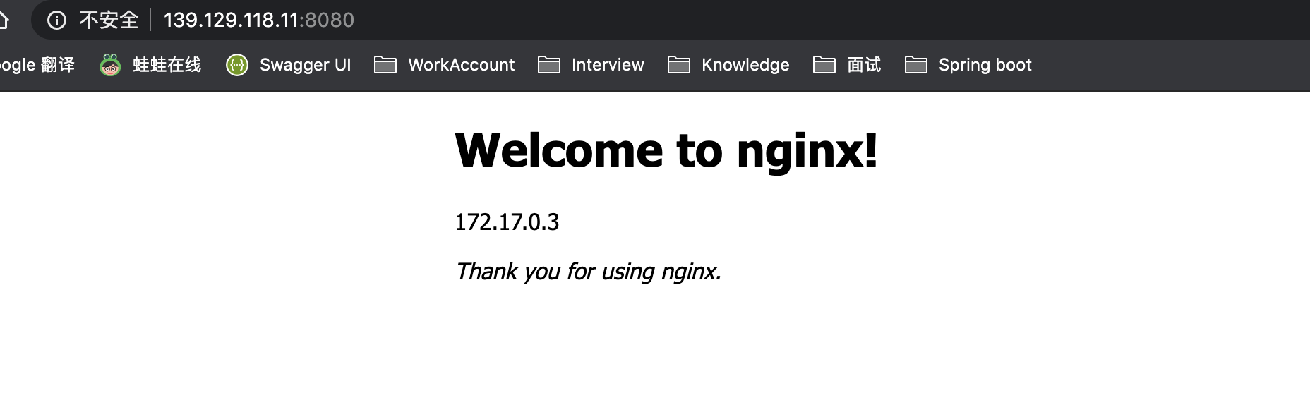 docker run -itd --name nginx_master -p 8080:80 daocloud.io/nginx /bin/bash创建nginx主服务容器,将容器的80端口映射到宿主主机的8080端口。