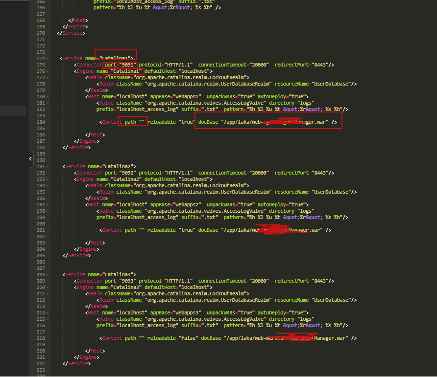 <Context path="" reloadable="true" docBase="/app/laka/webService/agentManager.war" />