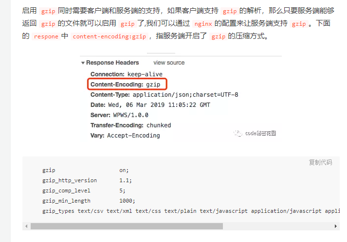 所以,在 HTTP1.0中如果利用 Nginx启用了 GZip,是无法获得 Content-Length的,这导致HTTP1.0中开启持久链接和使用 GZip只能二选一,所以在这里 gzip_http_version默认设置为 1.1。