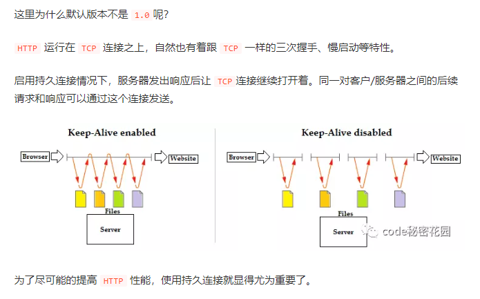 HTTP/1.1默认支持 TCP持久连接, HTTP/1.0 也可以通过显式指定 Connection:keep-alive来启用持久连接。对于 TCP持久连接上的 HTTP 报文,客户端需要一种机制来准确判断结束位置,而在 HTTP/1.0中,这种机制只有 Content-Length。而在 HTTP/1.1中新增的 Transfer-Encoding:chunked 所对应的分块传输机制可以完美解决这类问题。