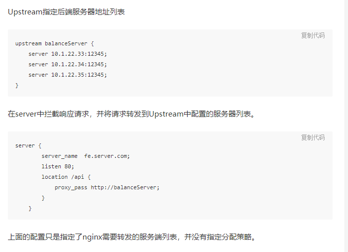 upstream:配置后端服务器的具体地址,负载均衡配置不可或缺的部分