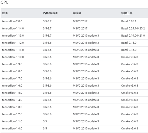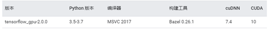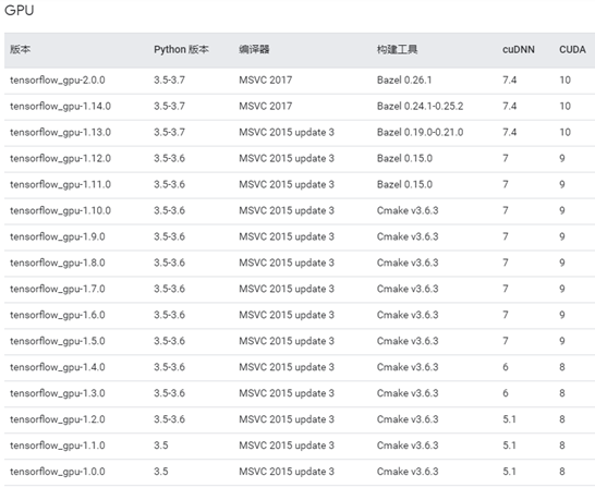 根据CUDA和cuDNN与tensorflow、python版本对照表,