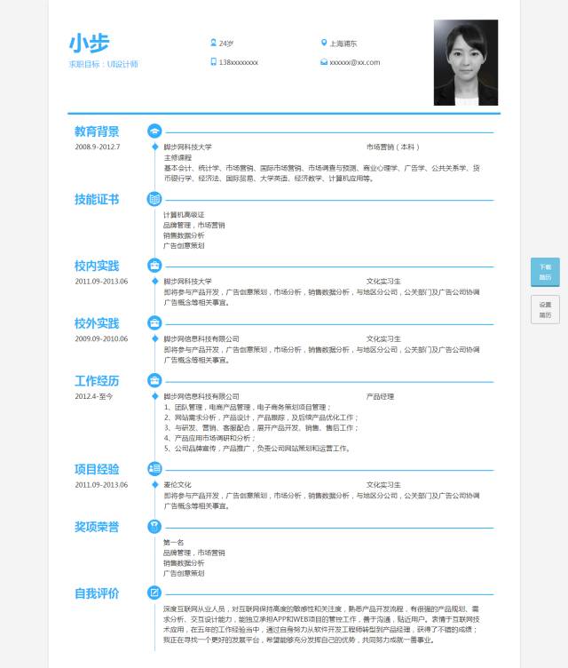内容就是一切,所以简历一定要突出你的能力、成就以及过去经验,仅有漂亮的外表 而无内容的简历是不会吸引人的。