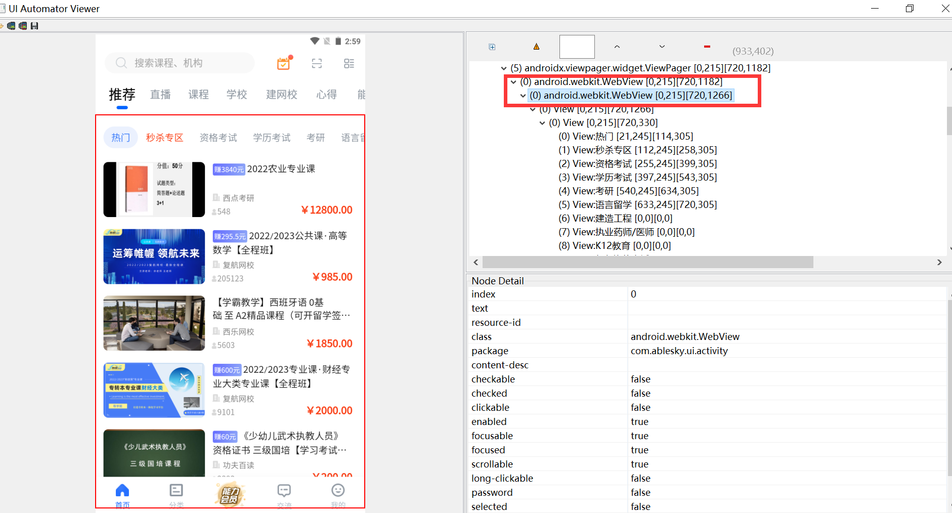 c. uiatuomatorviewer 打开,注意不只些图片的位置,还要把uix文件写入,看不到按tab键把选择页蹦出来