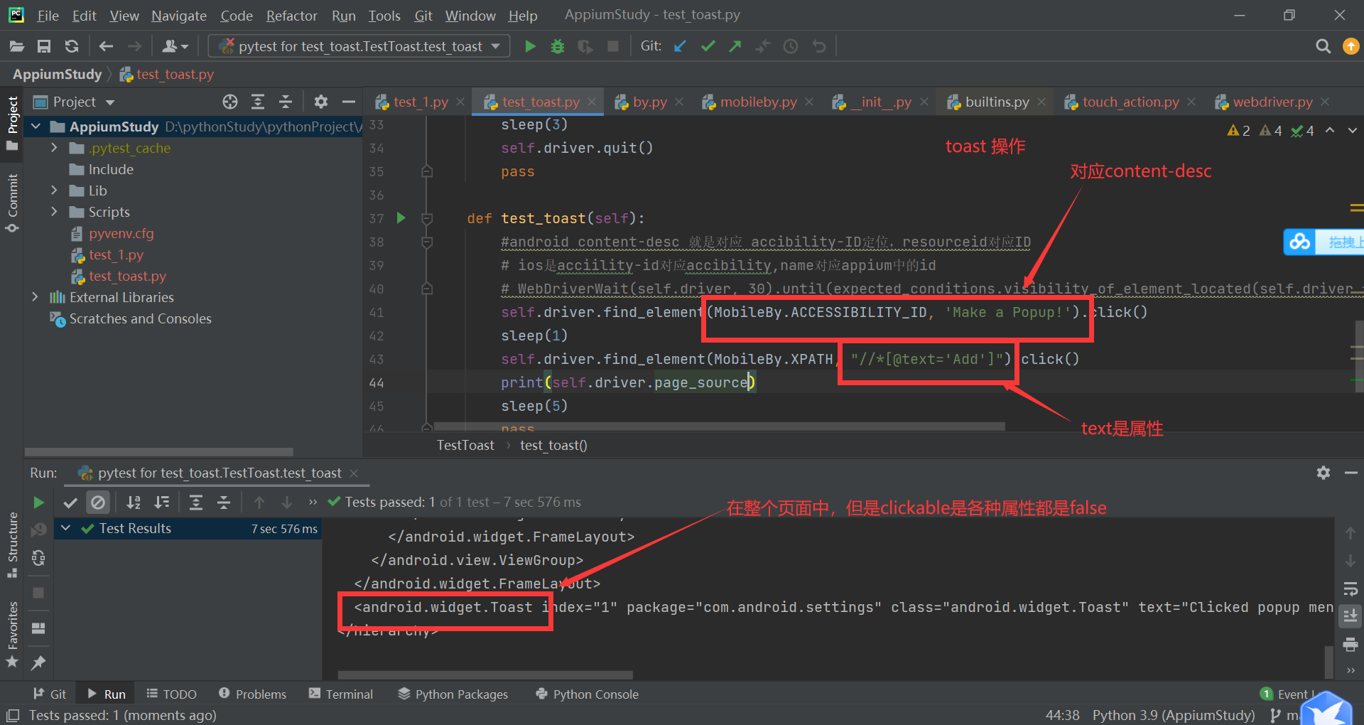 # 必须用xpath查找,方法通过text //*【@text, ""】 或者 //*【@class=”android.widget.Toast“】