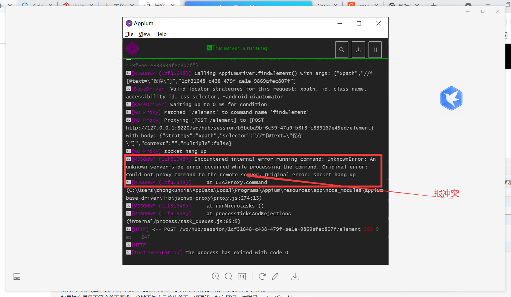 6. 执行代码过程中出现错误,比如哦socket hang up(没有quit),或者NoSuchDriverError:A session is either terminated or not started