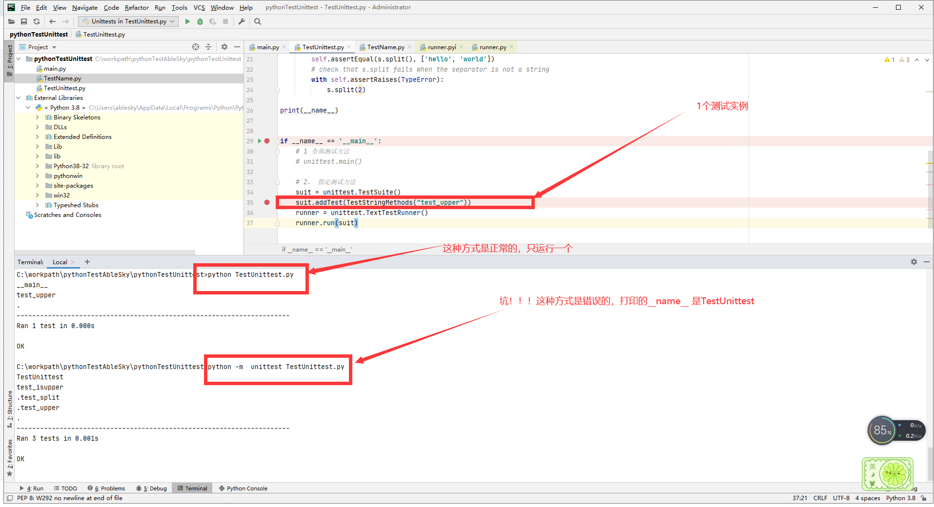 还没弄明白为什么 python -m unittest TestUnittest.py 运行的不对,TestUnittest.py当做被调用模块运行的