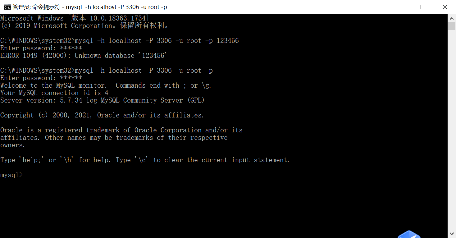 如果-p加密码 中间不加空格也可以,连接本地的 -h localhost -P 3306 可省略