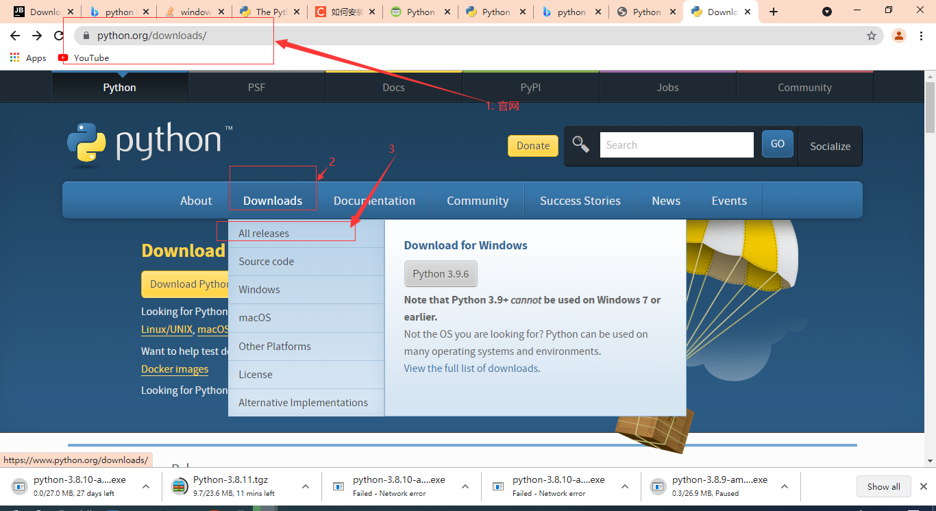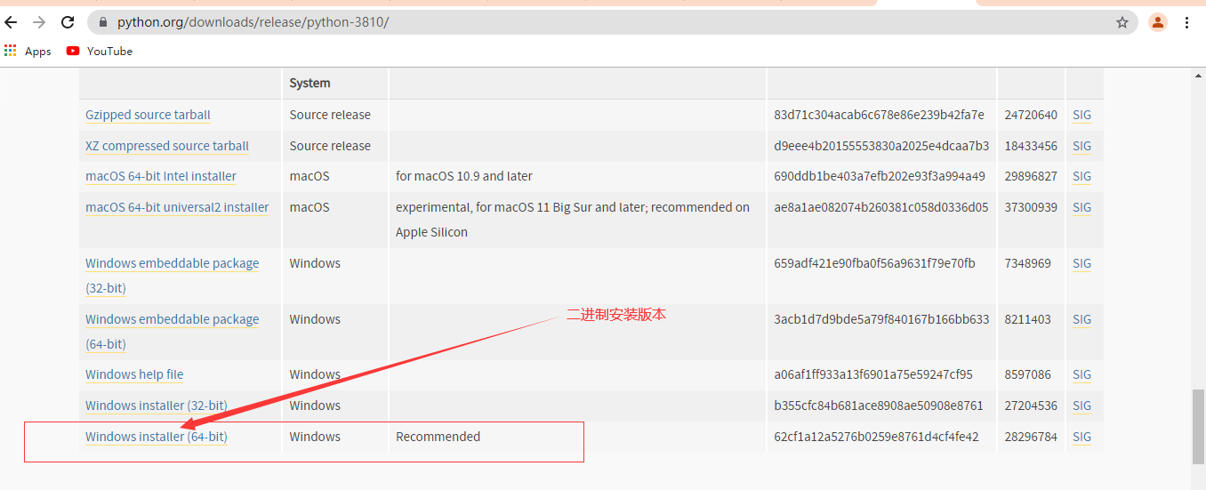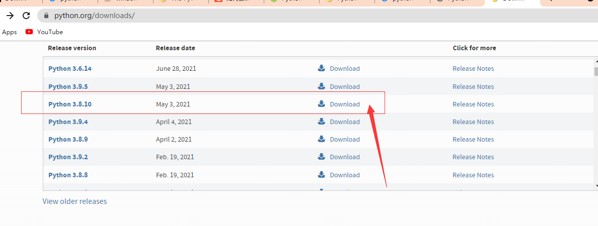 2. 开始找的是3.8.11, 发现没有二进制安装文件,里面有个说明是binary' install 仅仅支持到3.8.10,所有找3.8.10