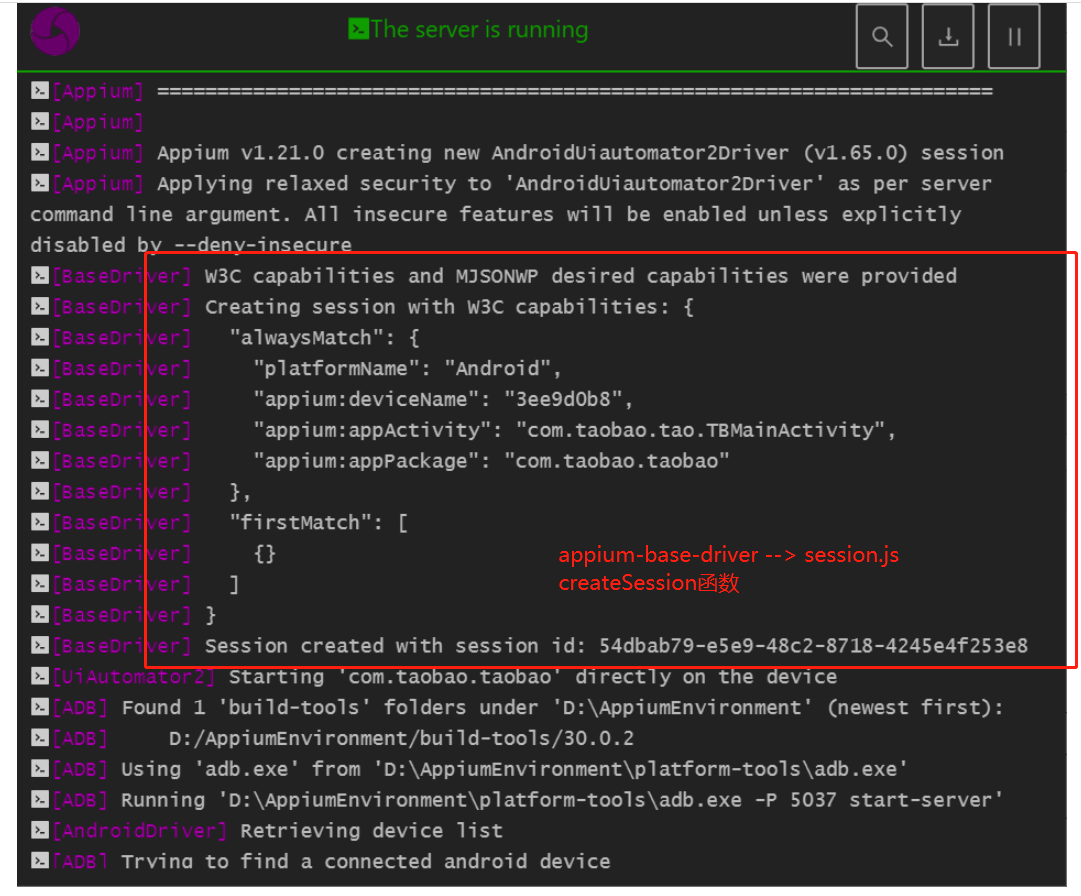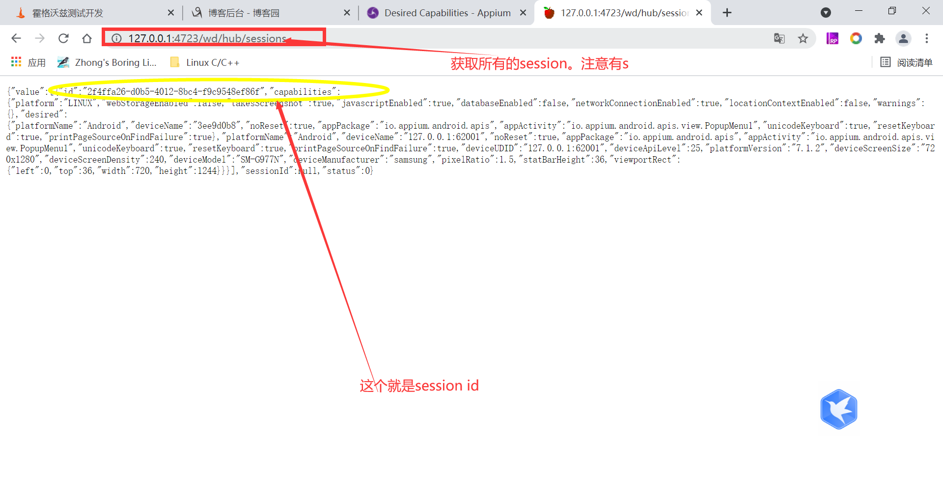 通过http://127.0.0.1:4723/wd/hub/sessions 获取到session