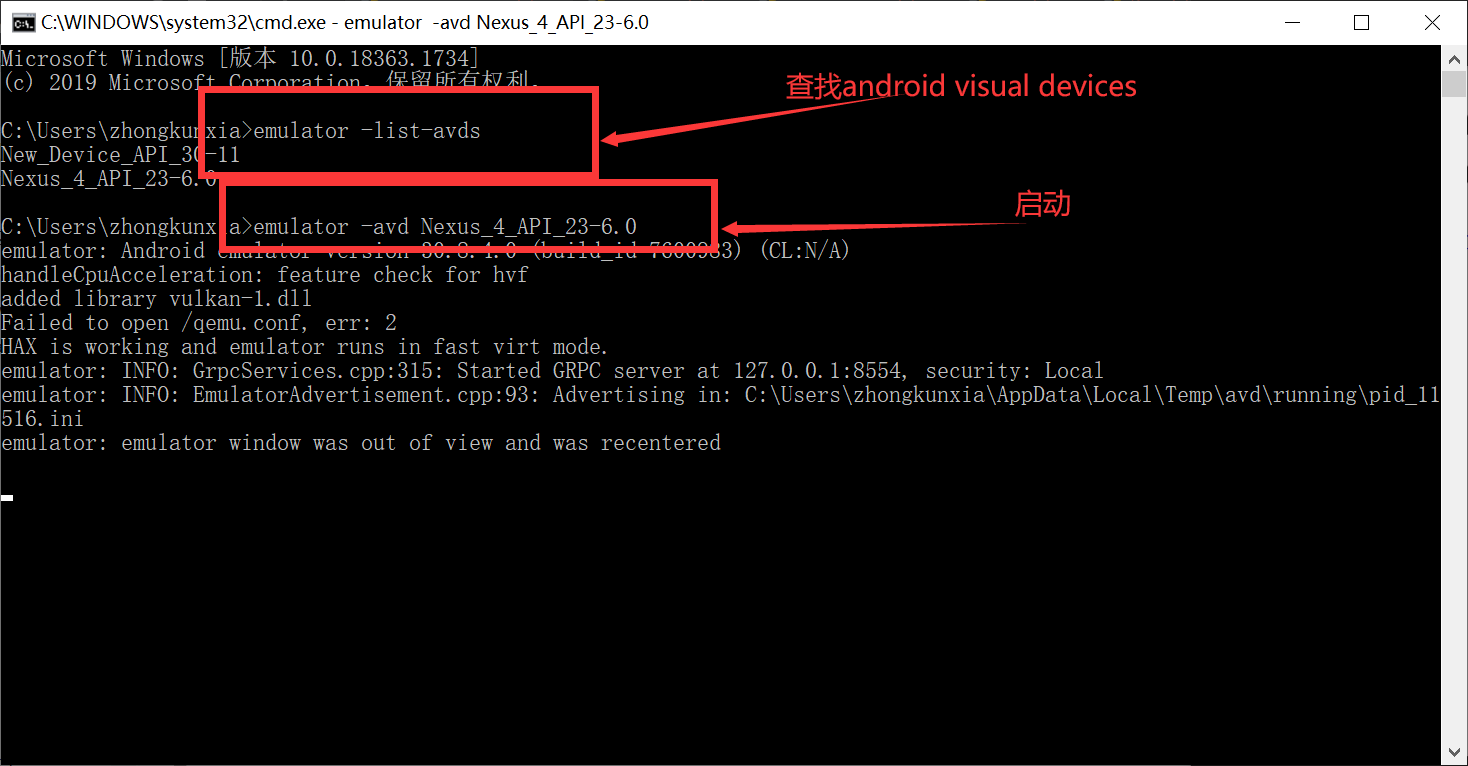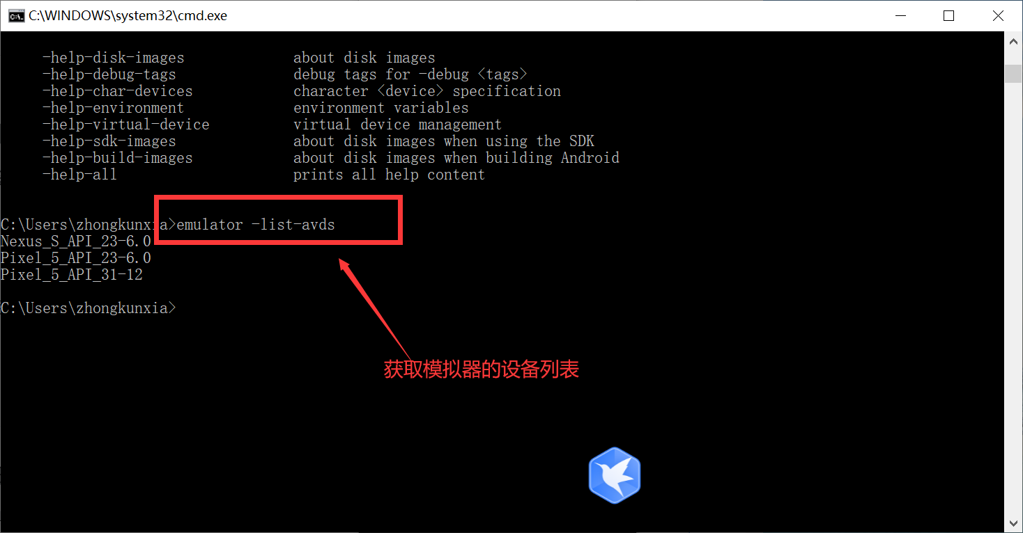 1. 获取andorid studio生成的模拟器设备列表