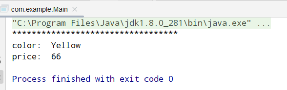 // 4. 获取类的方法 // 4.1 获取有参方法(第一个参数是方法名,第二个参数是setColor(String color) 的类型) Method setColorMethod = clazz.getMethod("setColor", String.class); Method setPriceMethod = clazz.getMethod("setPrice", int.class); // // 4.2 获取无参方法 Method getColorMethod = clazz.getMethod("getColor"); Method getPriceMethod = clazz.getMethod("getPrice"); // 4.1.1 调用有参方法, // .invoke() 就是调用这个方法,第一个参数是要操作的对象,第二个参数是修改的参数值 setColorMethod.invoke(apple, "Yellow"); setPriceMethod.invoke(apple,66); // 4.2.1 调用无参方法 // .invoke() 就是调用这个方法,参数是要操作的对象 Object color = getColorMethod.invoke(apple); Object price = getPriceMethod.invoke(apple); System.out.println("color: "+ color); System.out.println("price: "+ price);