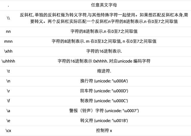 以上3个表达式 都表示大写字符A。第一个是8进制编码(101),第2个是16进制编码(41),第3个是unicode编码(0041).