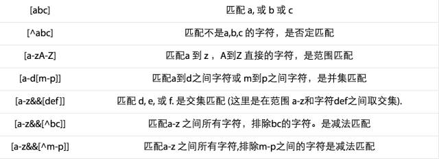 字符分类是一种结构,可以针对多个字符匹配而不只是一个字符。换句话说,一个字符分类匹配输入文本中的一个字符,对应字符分类中多个允许字符。例如,你想匹配字符 a,b 或c,表达式如下: