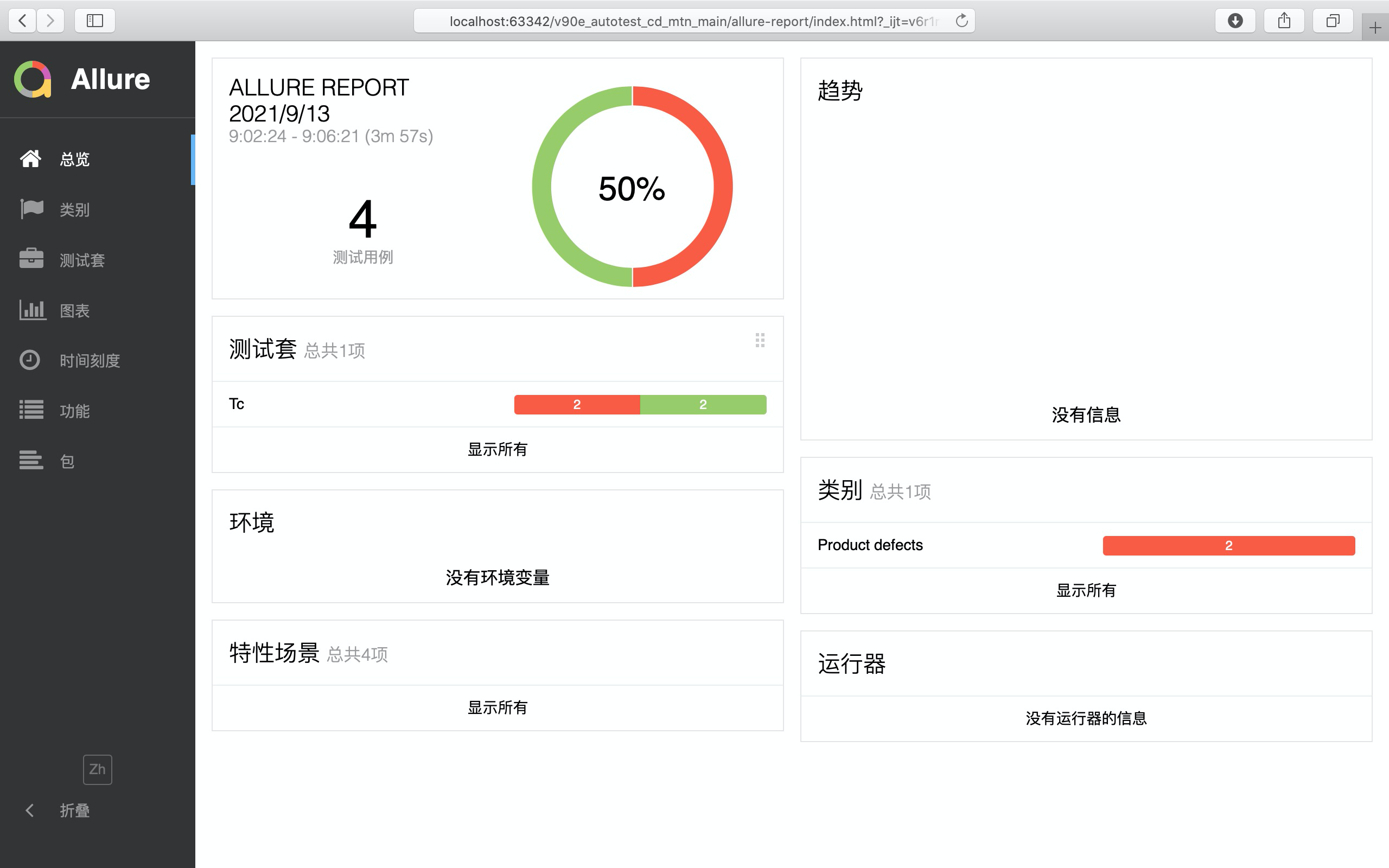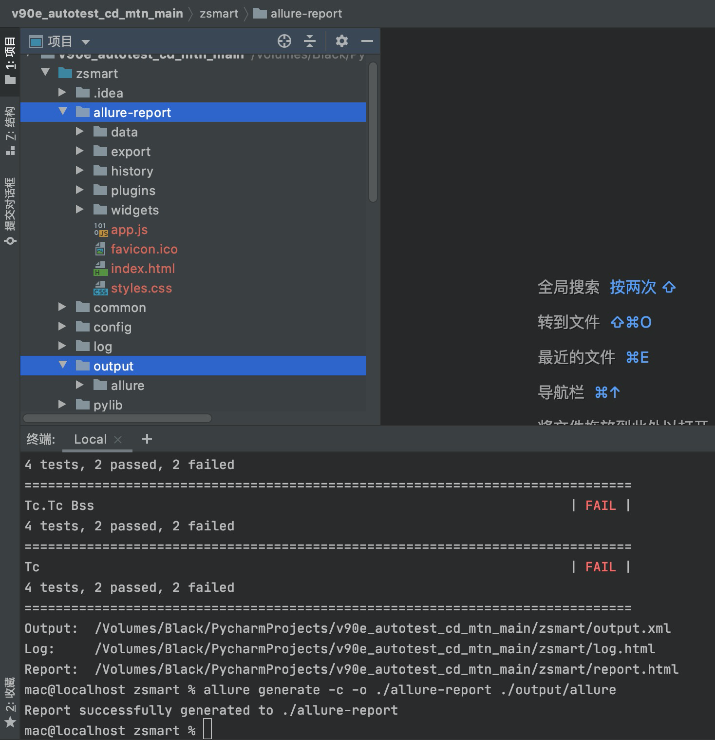 在上一步的输出目录里,用allure命令行生成报告 allure generate -c -o ./allure-report ./output/allure (-o参数指定输出报告的路径)