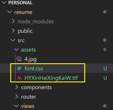 2、将下载好的字体放到项目的assets下,同时新建font.css文件