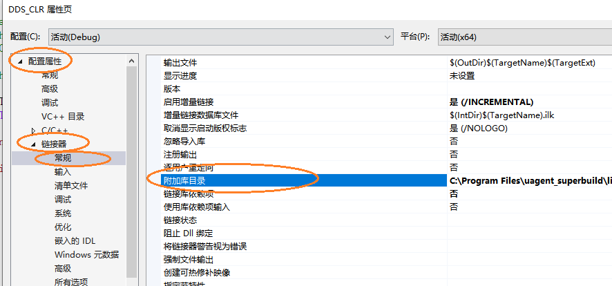方法二、【项目】--> 【属性】-- 属性页 --> 【配置属性】--> 【连接器】--> 【常规】--> 【附加库目录】