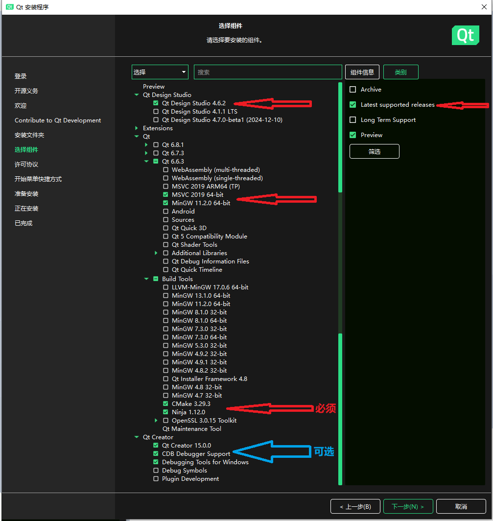 据需要下载在线安装包:qt-unified-windows-x64-4.7.0-online.exe 或者 qt-online-installer-windows-x64-4.8.0.exe
