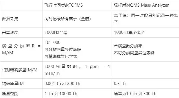 飞行时间质谱仪(TOFMS)和四极杆质谱仪(QMS)的比较