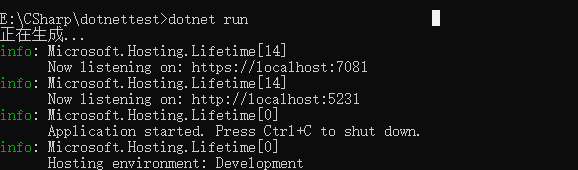 项目创建成功后,执行dotnet run就可运行项目