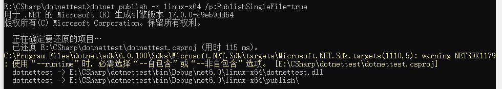 当然你也可以将其他系统(windows,mac)作为目标,其他指令参考官网dotnet publish 命令 - .NET CLI | Microsoft Docs
