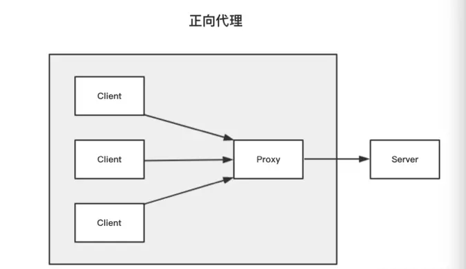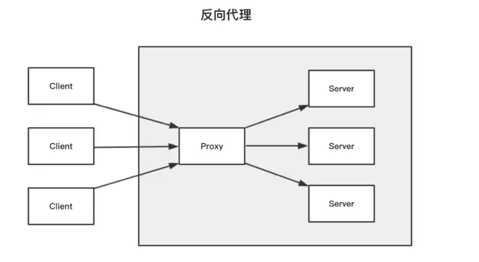 nginx 就是充当图中的 proxy。左边的3个 client 在请求时向 nginx 获取内容,server 是感受不到3台 client 存在的。