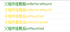 父组件先执行了onBeforeMount,然后子组件编译->挂载->激活,最后是父组件挂载。