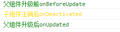 在触发了子组件onDeactivated,onActivated事件前后,分别触发了父组件的onBeforeUpdate和onUpdated生命周期。