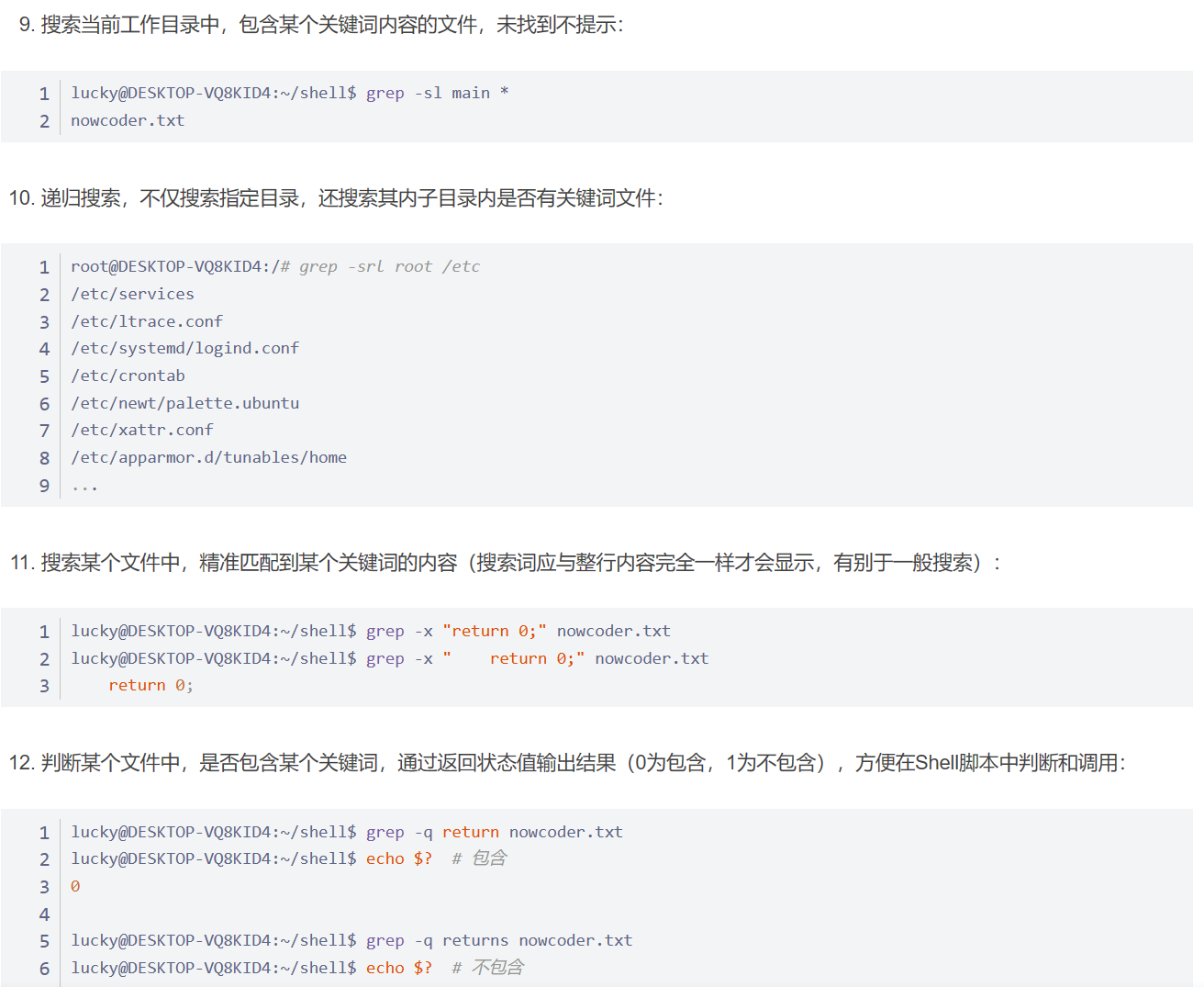 -q	禁止输出任何结果,已退出状态表示搜索是否成功
