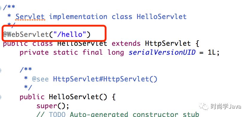 当类名前面有@WebServlet("/hello")时不需要再web.xml中配置