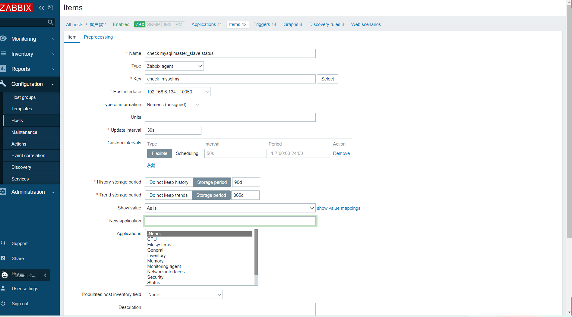 [root@zabbix-server ~]# zabbix_get -s 192.168.6.134 -k check_mysqlms 0