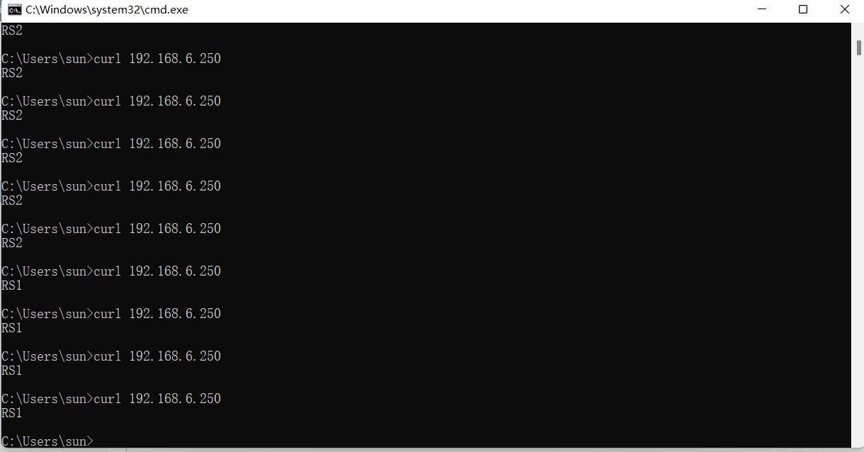 # 主上下载nginx [root@node1 ~]# dnf -y install nginx [root@node1 ~]# echo 'RS1' > /usr/share/nginx/html/index.html #增加网页内容 [root@node1 ~]# systemctl enable --now nginx #设置开机自启 Created symlink /etc/systemd/system/multi-user.target.wants/nginx.service → /usr/lib/systemd/system/nginx.service. # 备上下载nginx [root@node2 ~]# dnf -y install nginx [root@node2 ~]# echo 'RS2' > /usr/share/nginx/html/index.html [root@node2 ~]# systemctl enable --now nginx Created symlink /etc/systemd/system/multi-user.target.wants/nginx.service → /usr/lib/systemd/system/nginx.service.
