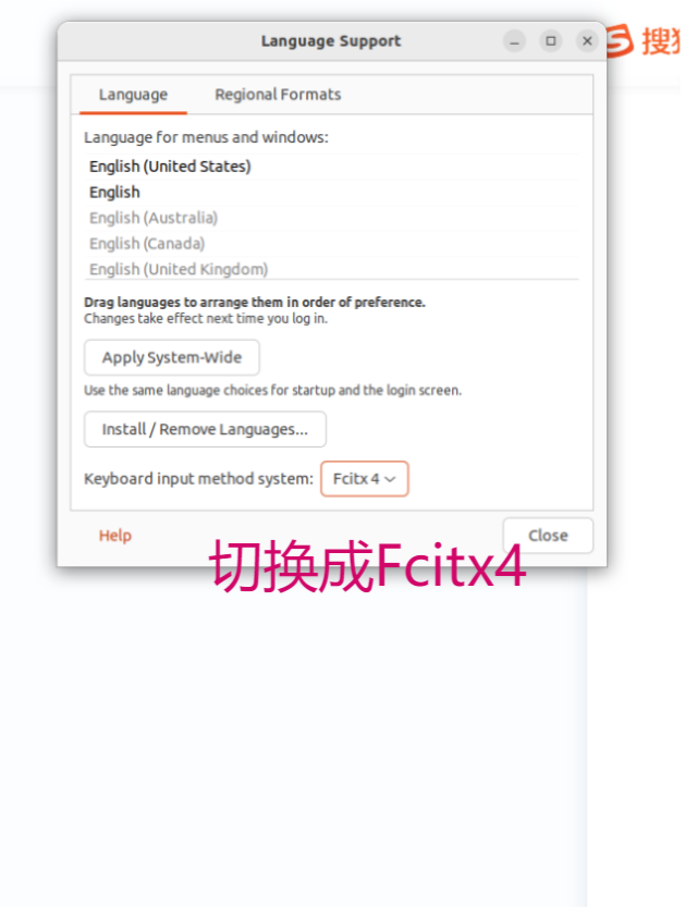 Ubuntu24下直接安装搜狗输入法是不行的,按照下面操作应该可以成功安装搜狗输入法,当前安装的搜狗输入法为:sogoupinyin_4.2.1.145_amd64.deb 下面是详细操作步骤,参考为本次安装时参考的各个文章: